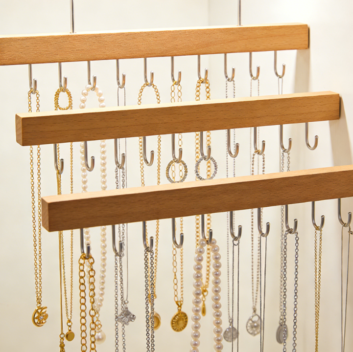 - Use a hanging jewelry organizer or wall display to keep necklaces separate (hanging prevents them from twisting)