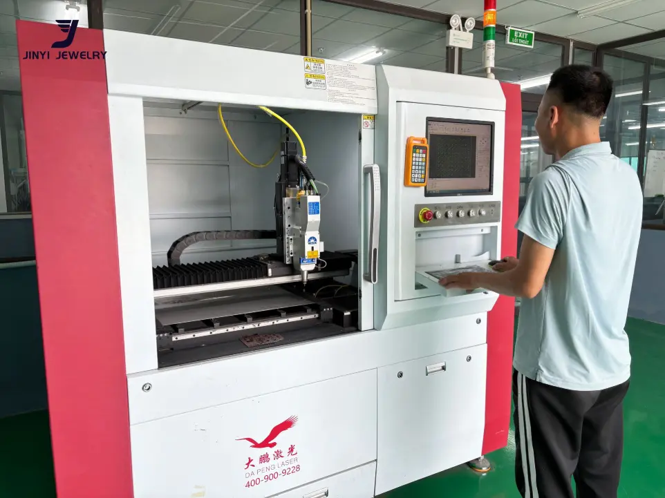 The jewelry design is first imported into specialized cutting software, which works in sync with advanced automatic cutting machines to precisely cut stainless steel plates into the required shapes and sizes for jewelry making.